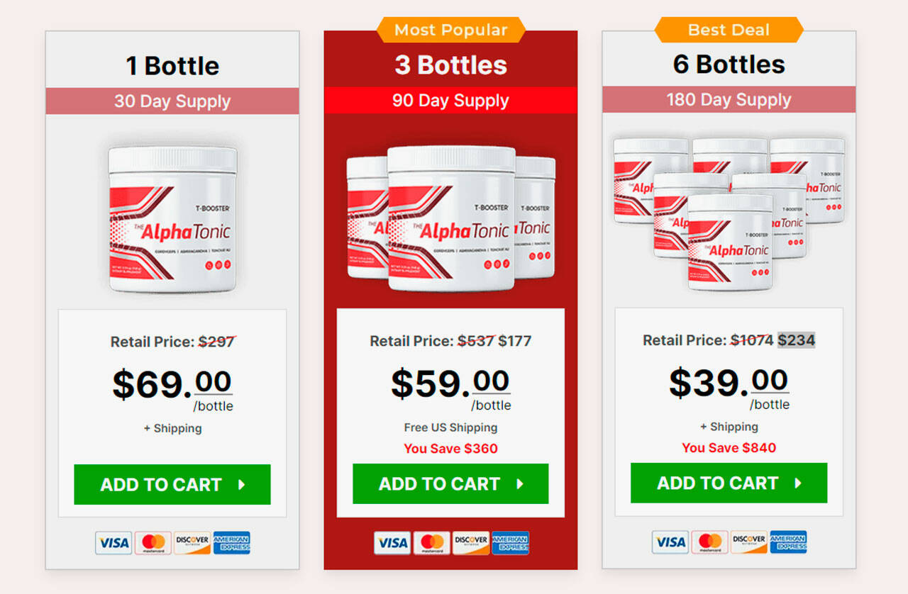 Today, AlphaTonic is available on a special price promotion when you order from the official online store. Currently, one tub of AlphaTonic is sold at $69.00. That’s a great price, but it’s not enough to experience AlphaTonic and its T-boosting effects on your physiology.