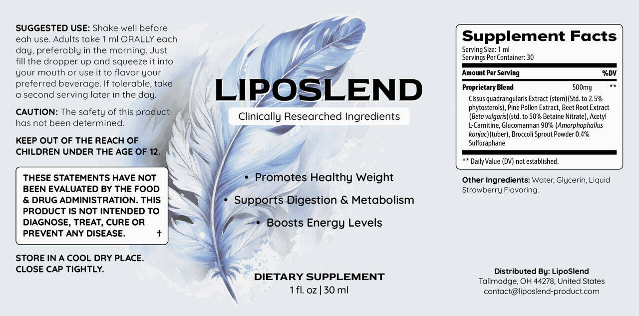 LipoSlend is marketed as a powerful formulation using 500mg of six clinically verified ingredients to activate natural liposuction and weight loss. The strawberry-flavored proprietary blended liquid supplement can boost metabolism, enhance glycemic scores, and supercharge energy levels.